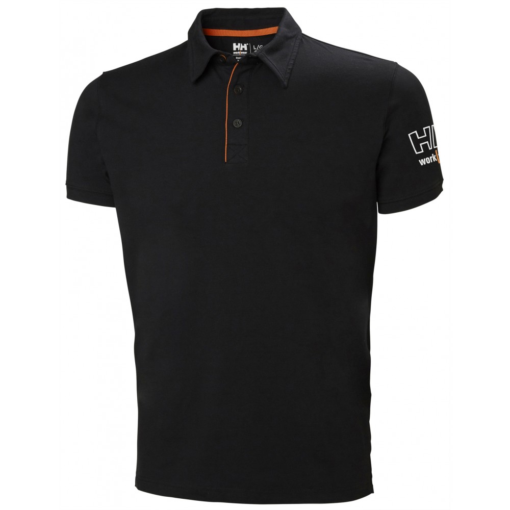 Polo aus 92% Baumwolle und 8 % Elasthan. Knopfleiste vorne. HH Workwear Logo auf dem Ärmel. Schlitz. Ersatzknopf.