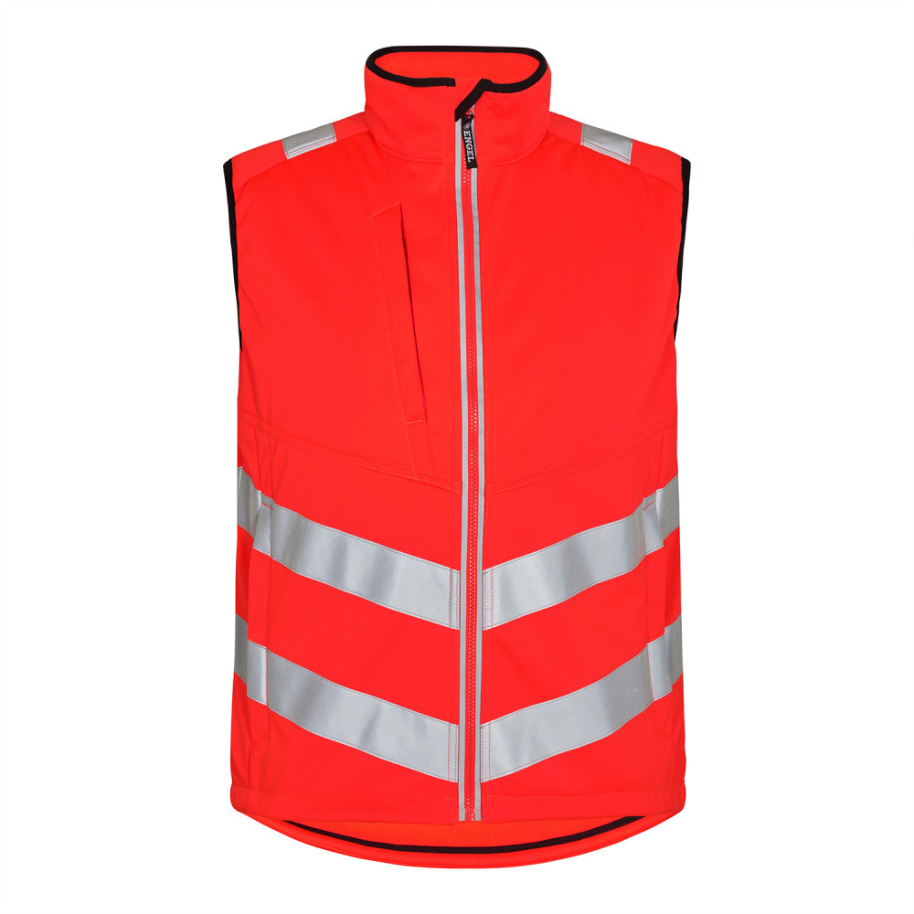 Safety Softshellweste 100% Polyester. Modern und dehnbar. Reflektierender Reissverschluss vorne. Warnschutz Klasse 1. Aussentaschen mit Reissverschluss.